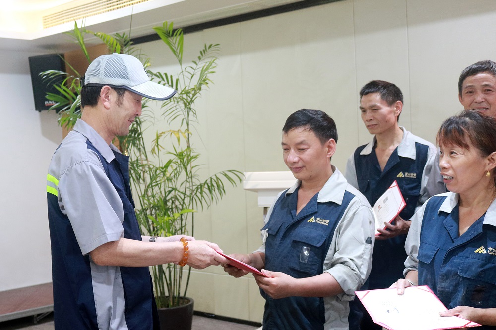 6月28日下午,浙江壹号娱乐-com钢管有限公司首批金属轧制工高级工颁证仪式在行政楼四楼培训室举行,该证经浙江省人力资源和社会保障厅备案,此次共21名员工取得了由企业自主评价认定的职业技能等级认定金属轧制工高级工证书。公司无缝管事业部总经理陈光森为通过考试的员工颁发证书。