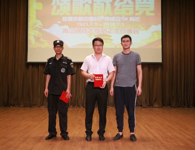 姜文宝首先致辞,他向各位寿星表示诚挚的祝福,并祝愿祖国更加繁荣富强。在党的98岁生日来临之际,借着公司这个特殊的舞台,员工纷纷以歌舞、朗诵等方式表达对党的祝愿及对同事的祝福。装备部欧阳昆塔演唱的《相信自己》拉开了晚会表演的帷幕,安环部、采购部员工朗诵的《七一献诗》更是点燃了整个晚会的现场气氛,行政人事部邓远兵演唱的《乌苏里船歌》让现场不少观众表示“开口跪”,手语舞《感恩的心》、合唱《大中国》、歌伴舞《我爱你中国》等节目让人应不暇接,现场掌声不断。由公司领导组成的评委组为各个节目评分,最终行政人事部的歌伴舞《我爱你中国》获得一等奖,独唱《龙的传人》、《乌苏里船歌》获得二等奖,手语舞《感恩的心》、朗诵《七一献诗》、独唱《青藏高原》获得三等奖,晚会表演结束后公司领导为获奖人员颁发了证书及奖励。晚会期间穿插的抽奖环节给幸运儿带来了冰箱、电饭煲、电风扇、夏凉被等实用的奖品。20时30分,晚会落下帷幕,公司为所有寿星分发了精美的生日礼物和蛋糕。