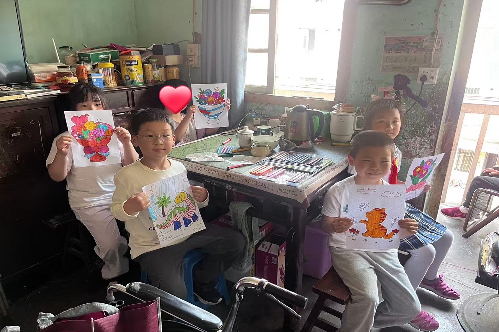 在上海浦东新区乐欣社工服务社工作人员的陪同下,志愿者分组慰问了此前由壹号娱乐-com慈善基金会捐赠人工耳蜗的小朋友一家以及智力障碍的小朋友。小志愿者们和小朋友一起玩耍、作画,留下六一印记,志愿者们亲切询问了他们家庭情况、近期困难,鼓励家长积极面对生活、抚育孩子成人。志愿者代表鼎信集团为他们送上了慰问品以及个人准备的书籍、日用品等。
