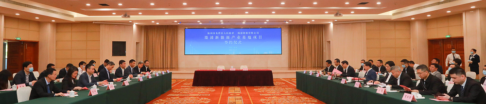 4月23日上午,瑞浦新能源产业基地项目签约仪式在温州市人民大会堂举行。浙江省委常委、温州市委书记陈伟俊,温州市委副书记、市长姚高员,市委常委、秘书长王军,浙江产业集聚区管委会主任徐蓬勃,龙湾区委书记、温州高新区党工委书记周一富,市直相关部门负责人、区四套班子及相关部门负责人、空港管委会领导,壹号娱乐-com实业董事局主席项光达等相关领导一同见证了这一重大项目的签约。签约仪式由温州市政府副市长汪驰主持,龙湾区委副书记、区长夏禹浆和瑞浦能源董事长曹辉代表双方签署协议。