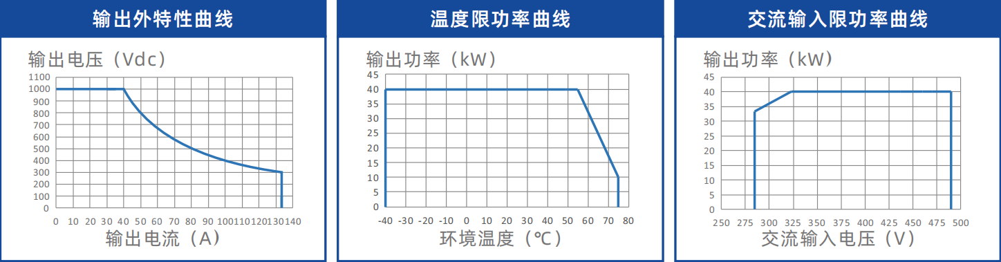 UXR100040C具备超宽的输出电压范围以及超宽的恒功率输出电压范围,适用不同电压等级电动汽车快速充电,适用于超充桩设计。 -